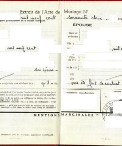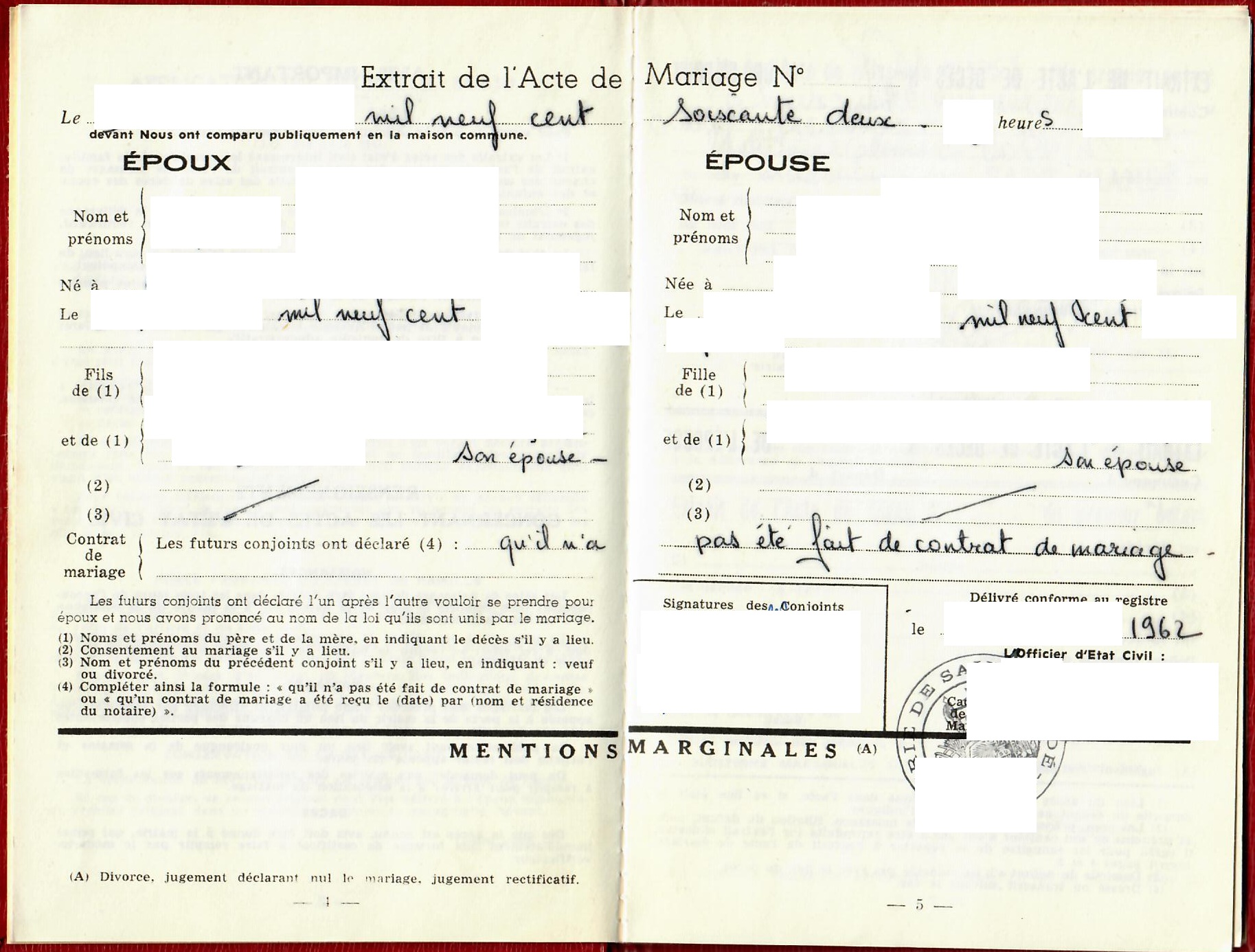 Extrait de l’acte de mariage (Frankreich), Eintrag ins Familienbuch, 1962